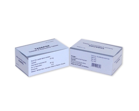 Dit geneesmiddel wordt geleverd in de vorm van tabletten voor oraal gebruik. Er is slechts één doseringsvorm van Tadapox op de markt. Elke Tadapox-tablet bevat Tadalafil 20 mg + Dapoxetine 60 mg.